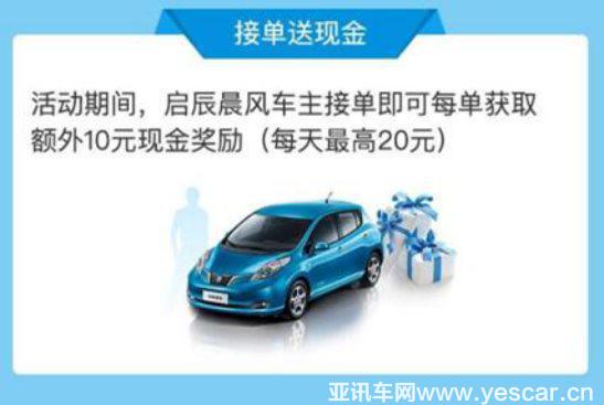 1.如果您是啟辰晨風(fēng)車主,活動期間使用嘀嗒APP接單就送現(xiàn)金,每單收益會在原基礎(chǔ)上額外再獎勵!