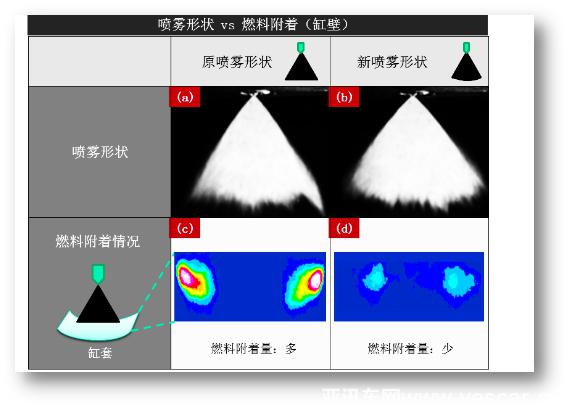 首先,豐田的設(shè)計(jì)師們將缸內(nèi)直噴的噴油嘴設(shè)計(jì)成扁平形狀并進(jìn)一步加長(zhǎng),這樣噴霧的形狀與傳統(tǒng)相比就更圓了,從而降低氣缸壁上的燃料附著,防止多余的燃料使機(jī)油劣化。