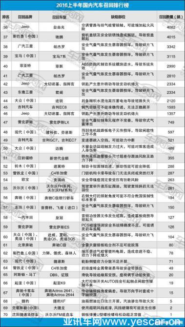 為便于消費(fèi)者更加清晰的了解上半年國內(nèi)召回情況,車質(zhì)網(wǎng)將國家質(zhì)檢總局公告進(jìn)行整理,按召回?cái)?shù)量由大到小進(jìn)行排序,其中將兩起涉及多車系不同缺陷的召回進(jìn)行拆分,最終得出以下排名: