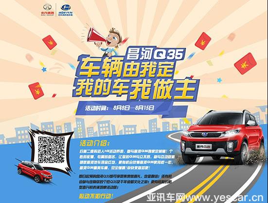 昌河Q35晉級(jí)“網(wǎng)紅”的最后一步,選擇了繼續(xù)將“私人訂制”進(jìn)行到底。8月10日-8月17日,昌河汽車推出Q35上市福利第五波——“車輛由我定,我的車我做主”。