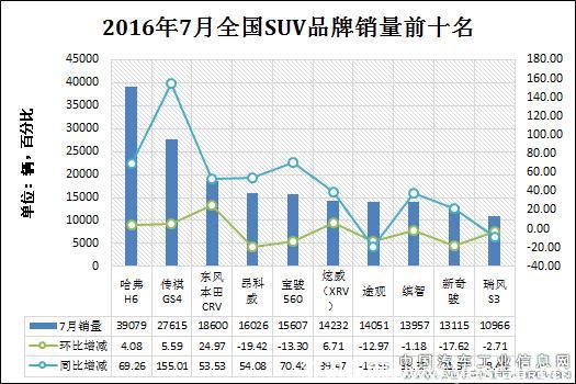 2016年7月銷量一出,讓已經(jīng)成為“紅?!钡腟UV市場(chǎng),又出現(xiàn)了一次赤裸裸的競(jìng)爭(zhēng)。今年以來(lái),哈弗H6、廣汽傳祺GS4、寶駿560等爆款車型持續(xù)紅火,中國(guó)品牌在SUV市場(chǎng)似乎又看到了春天。不過(guò)隨著消費(fèi)升級(jí),以及合資SUV車型今年開(kāi)始持續(xù)發(fā)力,中國(guó)品牌SUV也表現(xiàn)開(kāi)始出現(xiàn)后勁不足的疲態(tài)。