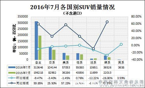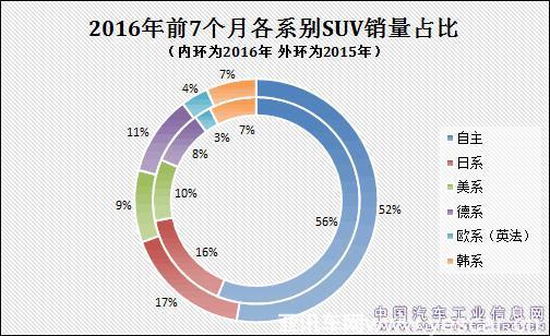 根據(jù)中國(guó)汽車工業(yè)協(xié)會(huì)發(fā)布的數(shù)據(jù),本網(wǎng)對(duì)7月SUV銷量進(jìn)行了排行。由上圖可以看出,銷量前十名的車型中,中國(guó)品牌占得4席,而在今年2月份,這一榜單中的前8名由中國(guó)品牌包攬,日系占據(jù)了4個(gè)席位,美系、德系各占據(jù)1個(gè)席位。另外,2016年上半年,全國(guó)SUV銷量前十車型中,中國(guó)品牌占據(jù)了6個(gè)席位,其它4款車型為合資品牌,到了7月份合資SUV占據(jù)6席,其優(yōu)勢(shì)更加明顯。由此可見(jiàn),自主SUV的市場(chǎng)份額正在逐步減少。