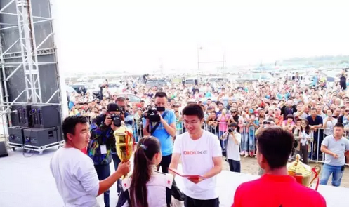 為冠軍車(chē)手頒獎(jiǎng)。