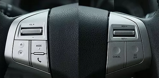 mu-X配備了多功能方向盤,集成了音響控制、藍牙電話和定速巡航功能。