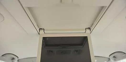 后排10.2英寸的液晶顯示屏,播放源來自中控臺上7.1英寸娛樂導航一體機,后排乘客可通過遙控器操作。