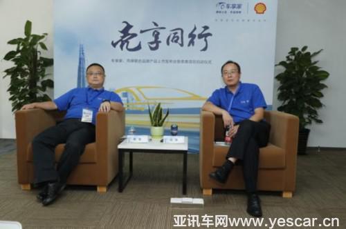 車享家執(zhí)行董事吳宏先生(左)和殼牌潤滑油業(yè)務中國大陸與香港地區(qū)總經(jīng)理沈堅先生(右)接受媒體采訪