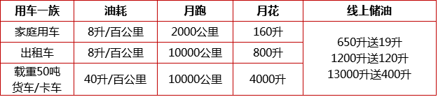 如上圖所示,本次油價上漲后,每次加滿一箱92號汽油50L容量,出租車每月至少需要多花125元,重度用油貨車/卡車則需要多花680元。營運一族長期用車用油,每次的成本增加意味著利潤的降低。車主更推崇的是“線上儲油”,其優(yōu)勢在于鎖定低油價,不受油價波動影響。油價上漲?儲油還能獲得價值增長的收益。