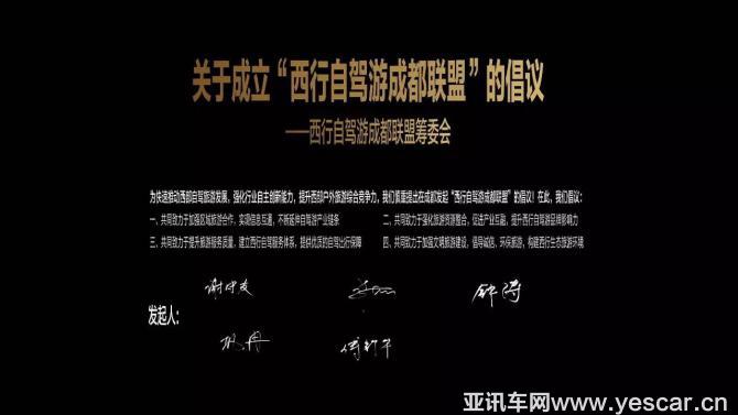 為進(jìn)一步促進(jìn)行業(yè)合作,有效整合資源,全方位推薦各自駕游路線和產(chǎn)品的對(duì)接和有機(jī)融合,中國(guó)國(guó)際露營(yíng)協(xié)會(huì)、中國(guó)汽車文化產(chǎn)業(yè)聯(lián)合機(jī)構(gòu)、重慶市自駕旅游協(xié)會(huì)、西藏自駕車旅游與營(yíng)地協(xié)會(huì)、四川省營(yíng)地與自駕游協(xié)會(huì)、成都房車露營(yíng)自駕旅游協(xié)會(huì)在發(fā)布會(huì)上共同發(fā)起《西行自駕游成都聯(lián)盟發(fā)起人聯(lián)合倡議》。未來(lái),西行自駕游成都聯(lián)盟將促進(jìn)西部旅游資源管理方與全國(guó)自駕游產(chǎn)業(yè)伙伴攜手打造西部自駕游品牌,推動(dòng)西部地區(qū)的全域旅游建設(shè)。