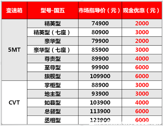 你造嗎?眾泰大邁X5推出一次史無前例的現(xiàn)金優(yōu)惠政策!1.5T車型裸車優(yōu)惠最高6000元,詳情如下:
