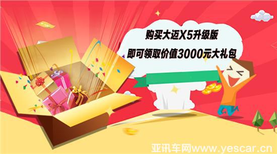 鉅惠三、大邁X5升級版送價值3000元大禮包!