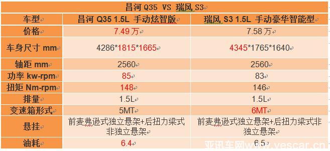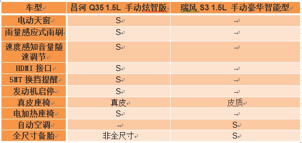 公平起見,本文選擇了昌河Q35 2016款1.5L手動炫智版和瑞風(fēng)S3 2017款1.5L手動豪華智能型這兩款價格相當(dāng)?shù)能囆蛠磉M(jìn)行對標(biāo),兩車的基本信息如下: