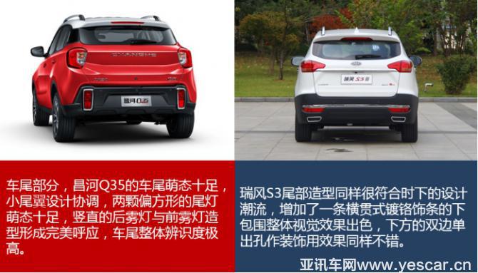 外觀小結(jié):兩款車型都上市不久,所以二者在外觀設(shè)計上都具有新穎、時尚、前衛(wèi)等一系列新推出的小型SUV所共有的特征。二者的不同之處在于,昌河Q35似乎更傾向于塑造自身獨(dú)特的視覺形象,因此在外部特征方面具有較高的識別度,整體呈現(xiàn)出的效果相當(dāng)出彩;而瑞風(fēng)S3則更注重于追趕潮流,在外觀設(shè)計中融入了大量符合最新潮流的時尚元素,整體效果也很不錯。