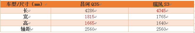 空間:昌河Q35更寬更高,瑞風(fēng)S3更長