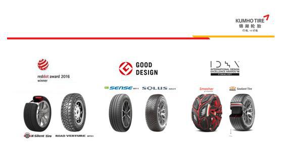 當然,這一切都建立在扎實的產(chǎn)品品質之上。錦湖輪胎始終堅持在產(chǎn)品的研發(fā)上進行巨大的投入,以優(yōu)質的行駛、操控體驗為核心,不斷推出廣受市場好評的輪胎產(chǎn)品,也受到了各類設計獎項的好評。低噪音K-SILENT輪胎和越野專用輪胎MT51連續(xù)5年問鼎德國紅點設計大獎;Sealant自我修復輪胎與未來概念Smasher輪胎斬獲美國IDEA設計大獎;綠色輪胎環(huán)保觀念 SE11和舒樂馳HA31讓錦湖輪胎實現(xiàn)日本優(yōu)良設計獎G-Mark三連冠,錦湖輪胎在2016年橫掃國際各大獎項,徹底征服了國際設計界。