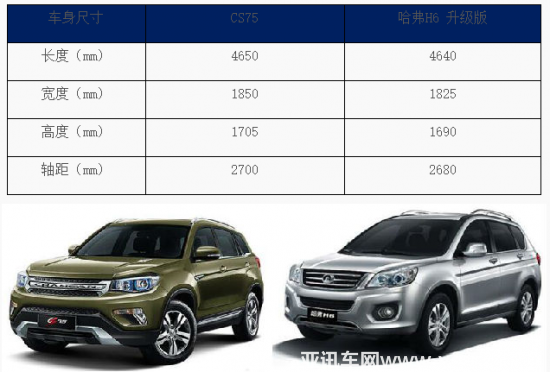 對比一下車身尺寸,CS75的數(shù)據(jù)完勝哈弗H6。