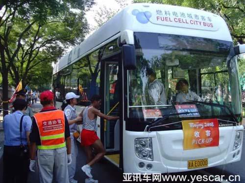 2008年奧運會期間,福田歐輝氫燃料電池客車以出色的服務(wù)和綠色理念,圓滿完成了馬拉松比賽服務(wù)用車的任務(wù)。