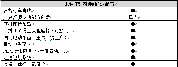 關(guān)鍵詞:T5,系統(tǒng),比速,配置,車型