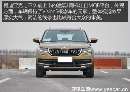 柯迪亞克與途觀L一樣采用了大眾集團(tuán)的M(沒)Q(區(qū))B(別)平臺(tái),從外觀來(lái)看,柯迪亞克的整體外觀基本延續(xù)了之前VisionS概念車的設(shè)計(jì)元素,用了較多的銳角線條,所以就外形而言柯迪亞克更潮、更年輕一些。