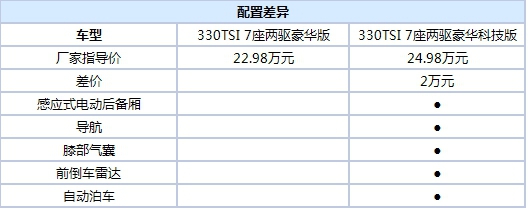 330TSI 7座兩驅(qū)豪華科技版 指導(dǎo)價(jià):24.98萬(wàn)元