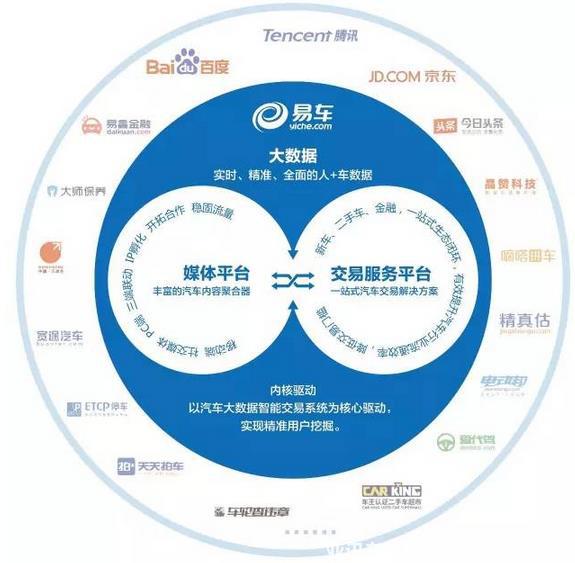 在此之下,易車將大數(shù)據(jù)作為貫穿媒體平臺與交易服務(wù)平臺這兩大支柱平臺的核心驅(qū)動力,三者共同搭建起了整個易車生態(tài)系統(tǒng)的輪廓。