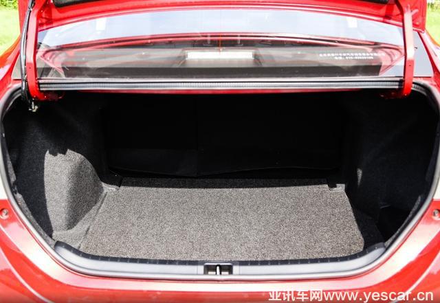 軸距2686mm的明銳在內部空間布局上得心應手,能為乘客提供舒適的乘坐感。我們讓身高183cm的體驗者坐進車內,發(fā)現體驗者在前排可以得到一拳的頭部余量,而在后排則獲得了頭部一拳與腿部兩拳的空余,成績相當出眾,乘坐舒適性得以保障。再者,行李廂也是明銳的一大優(yōu)勢,其采用了掀背式車身設計,為裝載行李增添了更多可能性,行李廂內部容積為590L,放倒后排座椅后可拓展至1580L。