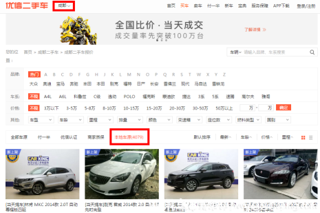 奇怪的是,如果看全部車源,優(yōu)信僅成都和哈爾濱兩地就有超過(guò)18萬(wàn)臺(tái)車了,其全國(guó)顯示有203084臺(tái),其200多個(gè)其他城市難道只有不到2萬(wàn)臺(tái)??jī)?yōu)信全部車源和本地車源的區(qū)別,頁(yè)面上并沒(méi)有詳細(xì)的介紹。