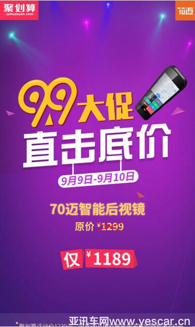 重磅消息!新一輪促銷攻擊波就來開始了!9月9日-9月10日70邁智能后視鏡擊穿低價,天貓聚劃算直降110元,僅售1189元。只有兩天!活動后恢復(fù)原價,9月狂歡就看這一波!