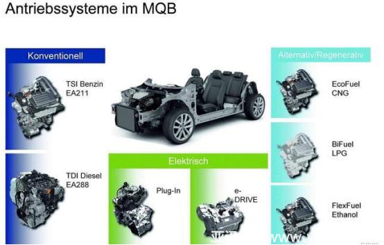 大眾MQB平臺(tái),根據(jù)目標(biāo)車型市場(chǎng)定位,可靈活匹配動(dòng)力、傳動(dòng)、前后去驅(qū)動(dòng)橋等模塊化分系統(tǒng),進(jìn)行任意組合后行車不同軸距、輪距、驅(qū)動(dòng)形式的車型。