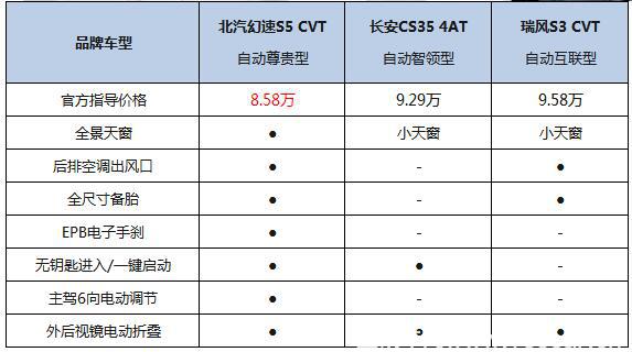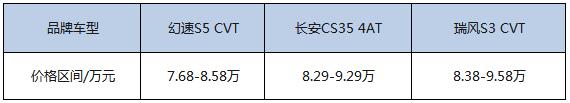 從對比車型的價(jià)格中可以看出,長安CS35 4AT和瑞風(fēng)S3 CVT的官方指導(dǎo)價(jià)都是8萬起步,雖然此前長安CS35在舊款的細(xì)節(jié)方面發(fā)生了一些變化,瑞風(fēng)S3也進(jìn)行了小改款,性價(jià)比稍加提升,但兩款車的價(jià)格仍然比北汽幻速S5高出了近萬元。從價(jià)格上,北汽幻速S5在三款車型售價(jià)較量中更勝一籌。