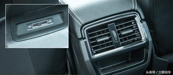 后排配備了單獨(dú)的可自行調(diào)節(jié)的空調(diào)出風(fēng)口,下方是個(gè)小的儲物格,再下方是兩個(gè)獨(dú)立的USB接口。