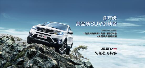 據(jù)悉,自8月28日開始開展上市前預(yù)售活動以來,凱翼X5的首月訂單量突破3000臺,在強(qiáng)手如林的A級SUV市場迅速殺向主流陣營。