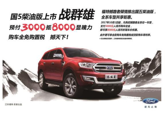 金九銀十之際,福特撼路者傾情巨獻新款柴油國五版。撼路者上市兩年以來,因其高性價比、強勁的動力、全面的越野性能均高于同級別越野車。眾多車友們也一直密切關(guān)注國五上市的消息,這次新款柴油國五版撼路者發(fā)布可謂是備受矚目。終于,國慶期間在阿拉善首屆粉絲大會上不負眾望,發(fā)布了新款車型及價格。并且推出了購車優(yōu)惠政策,用以回饋兩年來消費者對撼路者的喜愛和支持!