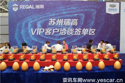 大力度的促銷、齊全的車型、豐厚的禮品、寬敞舒適的洽談環(huán)境,讓吉利汽車展區(qū)在展會三天時間成為昆山站現(xiàn)場人氣最為集中的地方,看車的、咨詢的、談判的人群絡(luò)繹不絕。吉利汽車的經(jīng)銷商對客戶也是十分尊重,每當(dāng)談判成功,訂單簽下,銷售顧問及現(xiàn)場工作人員立刻就忙碌起來,陪著客戶砸金蛋,贈送客戶相中的禮品,然后放禮花,為客戶舉辦喜氣的交車儀式。