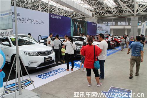 兩處展區(qū),16臺展車,在10月1~3日舉辦的本次百強(qiáng)巡展昆山站現(xiàn)場,吉利汽車參展陣容顯得十分強(qiáng)大。didu醬注意到雖然兩處展區(qū)分屬吉利汽車?yán)ド接劳ㄈA陽4S店和吉利汽車?yán)ド饺鸶?S店兩家經(jīng)銷商,但是他們在參展方面有很多相似的地方,一是在現(xiàn)場都推出了力度很大的促銷政策,最大幅度地讓利于購車客戶,二是銷售顧問、現(xiàn)場工作人員人數(shù)很多,每有觀眾走近展區(qū),便有人員上前打招呼,接待,三是都為訂車看車的客戶準(zhǔn)備了豐富的禮品,并堆放在展區(qū)顯眼的位置,四是都布置了比較寬敞的談判區(qū),客戶看完車后,可以愜意地坐在舒服的桌椅前,與銷售顧問進(jìn)行細(xì)致的磋商。