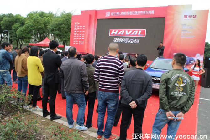 在10月14日舉辦的本次百強巡展宜興站開幕式上,哈弗旗下上市不久的M6被展會選為揭幕新車,由哈弗汽車宜興中正4S店展廳經(jīng)理吳金霞與當?shù)厥孜还6車主一起為新車揭幕,引起現(xiàn)場觀眾的密集圍觀。