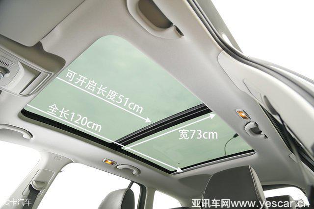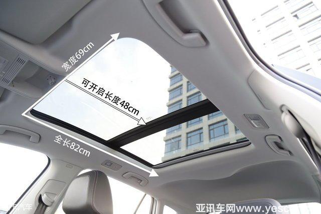 蔚領(lǐng)也配備了全景天窗,不過(guò)尺寸比明旅略小,主要的差別在于長(zhǎng)度只有82cm,采光面積≈0.566㎡。