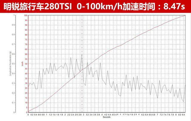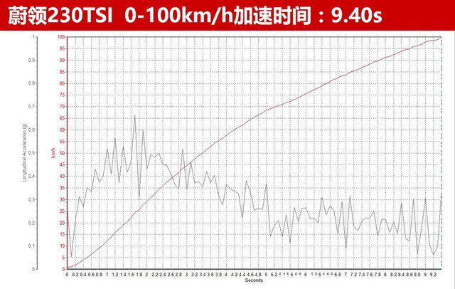 最終測(cè)得蔚領(lǐng)230TSI車(chē)型的0-100km/h加速時(shí)間為9.40s,比明旅280TSI車(chē)型慢了1s,由于兩臺(tái)發(fā)動(dòng)機(jī)高/低功率之間的差異,1s的差距也在意料之中。
