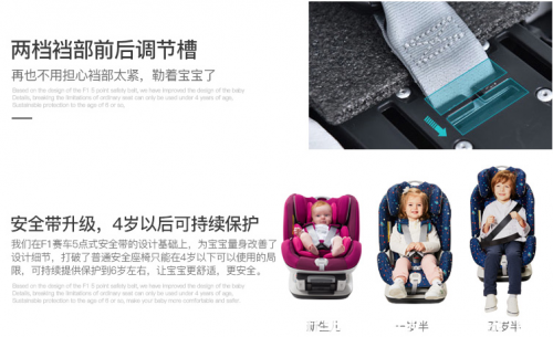 成長型空間設(shè)計,配備可調(diào)節(jié)的5點式安全帶