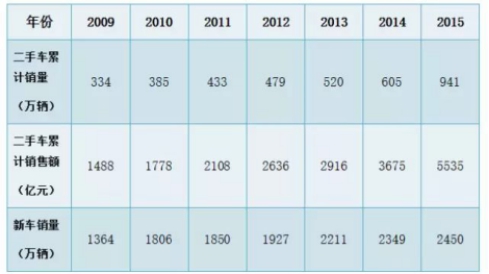 隨著中國汽車產業(yè)的日趨成熟和新車保有量持續(xù)增加,消費者換車需求彰顯,給二手車市場帶來新的發(fā)展機遇。與此同時,二手車的高性價比也逐漸得到青睞。中國汽車流通協(xié)會數據顯示,全國二手車交易量由2009年的334萬輛增長到了2015年的941萬輛,累計交易額從1488億元增至5535.40億元。