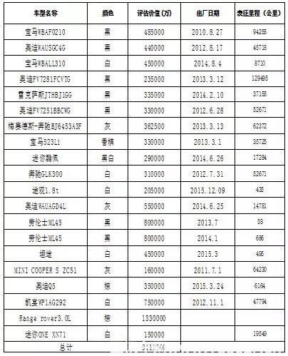 歷史交易車輛信息表