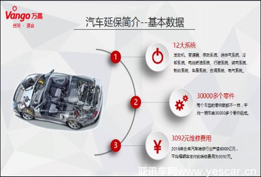 汽車延保包含三大數(shù)據(jù)。第一個(gè)數(shù)據(jù)是汽車的12大系統(tǒng),該數(shù)據(jù)每個(gè)公司區(qū)分都有差異,而萬(wàn)高則是按照汽車各個(gè)部件承擔(dān)的功能進(jìn)行區(qū)分,分為發(fā)動(dòng)機(jī)、變速器、傳動(dòng)、進(jìn)排氣、冷卻、電控燃油、行駛、轉(zhuǎn)向、制動(dòng)、車身、空調(diào)、電氣系統(tǒng)。