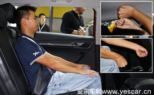 前排座椅保持不變,同一體驗者移至后排,頭部有兩拳的剩余空間,腿部剩余空間則超過兩拳,這一表現(xiàn)讓人滿意。