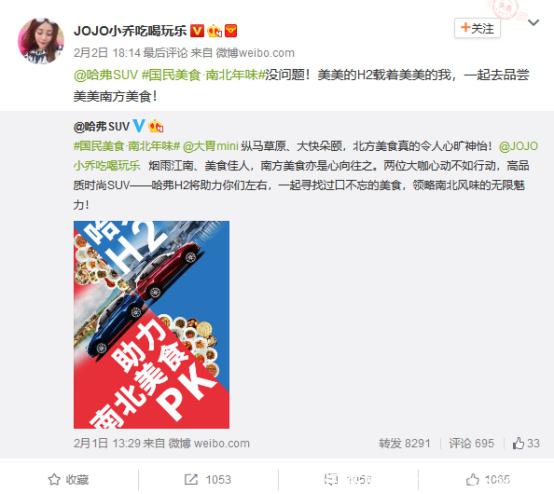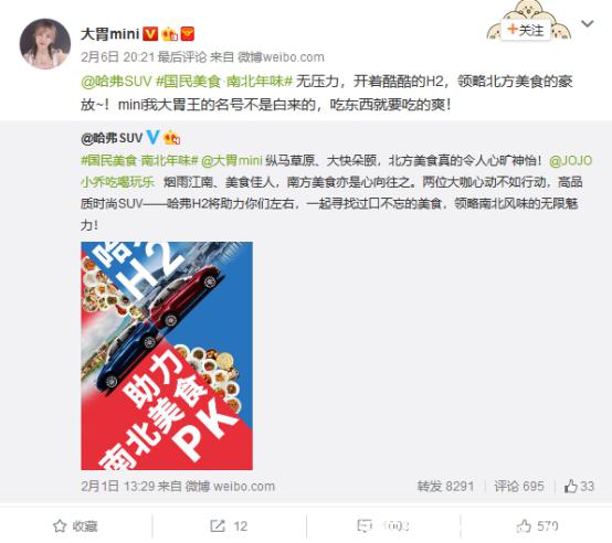 幾天前,哈弗官微發(fā)起了南北美食的話題,#國民美食·南北年味#,在微博上引發(fā)熱議。不少網(wǎng)友都自豪的展示自己家鄉(xiāng)的美食,回憶小時候的年味。話題的熱度引起了美食博主的關(guān)注,大胃mini和JOJO小喬吃喝玩樂更是自告奮勇,分別幫網(wǎng)友們尋找南北年味美食。