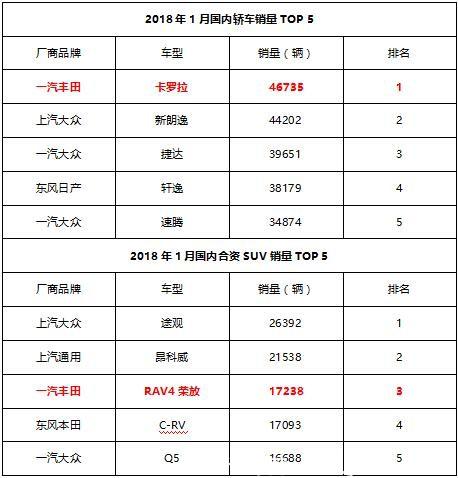 在轎車領(lǐng)域,卡羅拉以46735輛的銷量位列月度冠軍,同比增長77.7%;SUV領(lǐng)域,RAV4榮放以17238輛的月銷量成績,位居合資品牌SUV 銷量top3。