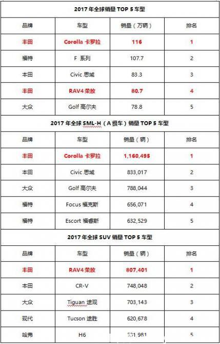 不僅在中國,放眼全球汽車市場,豐田旗下的卡羅拉與RAV4也絕對稱得上“神車”。2017年兩車全部進(jìn)入全球銷量排行榜前十,卡羅拉以116萬輛的業(yè)績繼續(xù)占據(jù)冠軍寶座;而RAV4榮放則銷售80.7 萬輛,全球SUV市場排名第一、整體銷量全球前四強(qiáng)。一個暢銷半個多世紀(jì),以超過4400萬輛的成績位列全球銷量第一,一個以城市SUV先行者的角色進(jìn)入市場,走過24個年頭依然保持強(qiáng)悍增勢。今天我們就來聊聊,這對豐田悍將為何能數(shù)十年穩(wěn)坐銷量黃金寶座?