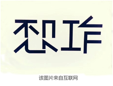 我相信大多數(shù)人最熟悉的還是方塊字。因?yàn)閺男〉酱?,我們耳濡目染最多的就是“橫平豎直”的書寫體。然而現(xiàn)在,漢字也可以通過巧妙的構(gòu)思,或有趣的變換,產(chǎn)生異曲同工的精妙解讀。比如下面這兩個(gè)字: