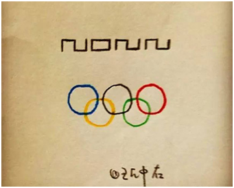 還有這張圖,中間是奧運(yùn)五環(huán)標(biāo)志,上面用“2022”組成了“長城”的圖樣,非常圖像化地表達(dá)了北京是2022年冬奧會(huì)主辦之地。