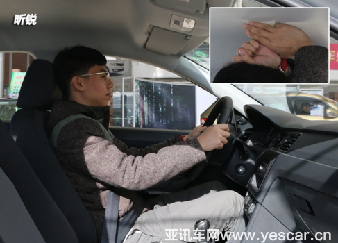 身高175cm的體驗(yàn)者,將座椅調(diào)至合適位置時(shí),頭部剩余空間大概有1拳3指。
