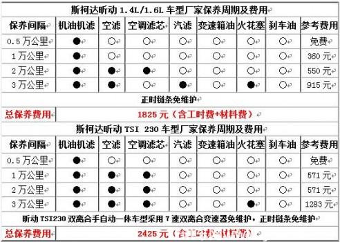 在保養(yǎng)價格上,采用1.4L和1.6L自然吸氣發(fā)動機(jī)的昕動更換機(jī)油機(jī)濾的小保養(yǎng)參考花費約為360元,換機(jī)油機(jī)濾和空調(diào)濾芯、空濾以及火花塞的大保養(yǎng)參考花費約為915元,從上表中我們可以看出,斯柯達(dá)昕動1.4L或1.6L車型行駛3萬公里,包含材料費和工時費的總保養(yǎng)費用為1825元,而搭載1.4TSI發(fā)動機(jī)的車型3萬公里總保養(yǎng)費用則為2425元。