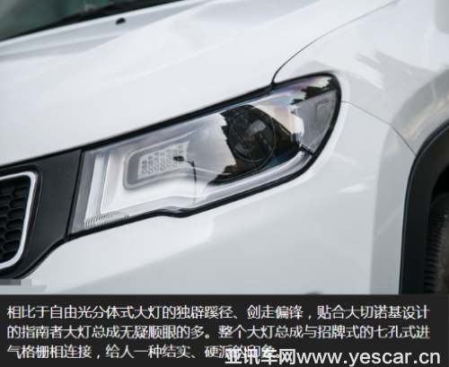 指南者的車身尺寸為4415/1819/1625mm,軸距為2636mm.車身數(shù)據(jù)在四款橫評車型中處在中間水平,不過不失。車身側(cè)面的車漆顏色雖然不及柯珞克奪人眼球,但是在前門J下方“COMPASS”的銘牌證明了自己的Jeep血緣。